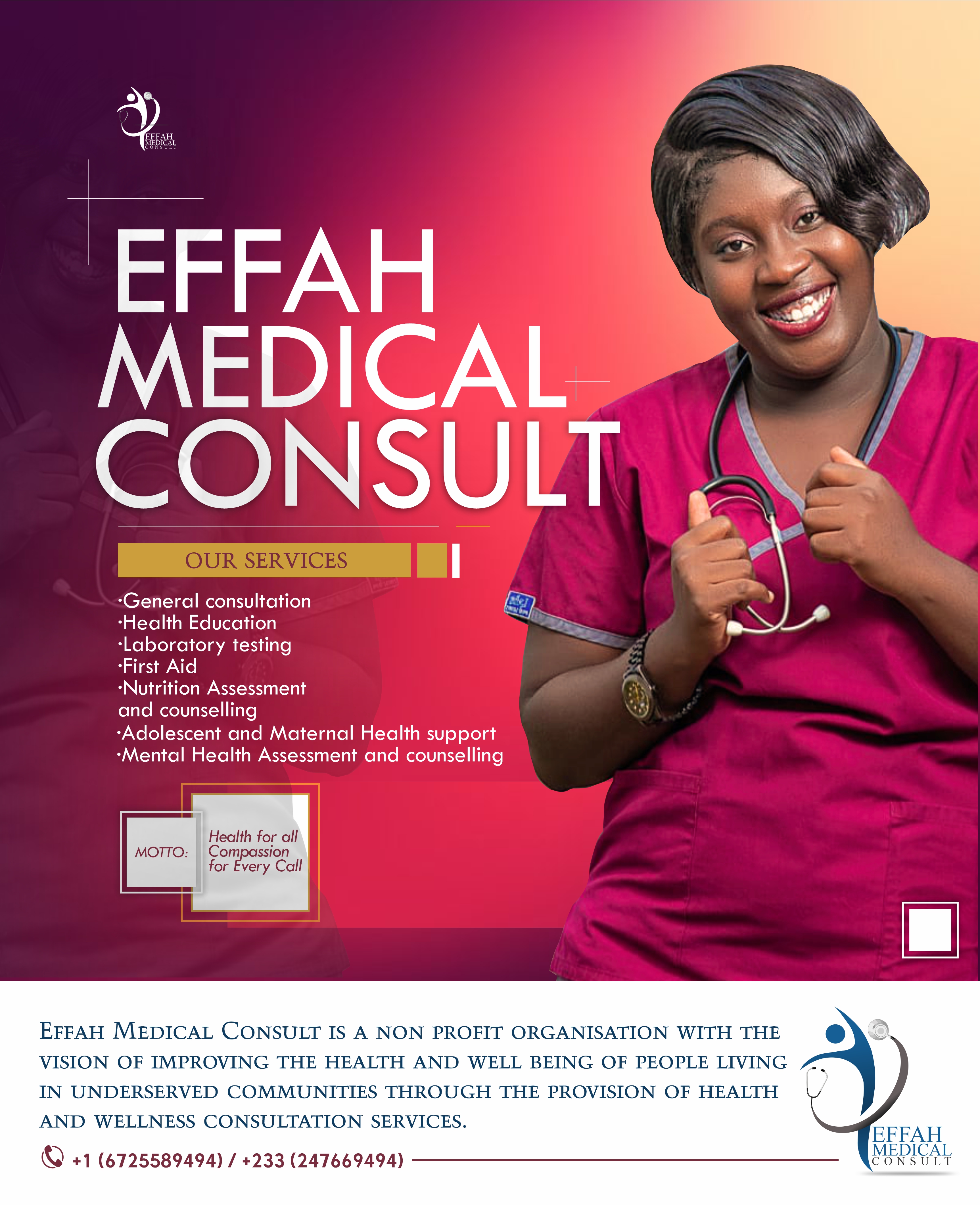 Effah Medical Consult is a non profit organisation with the vision of improving the health and well being of people living in underserved communities through the provision of health and wellness consultation services.
